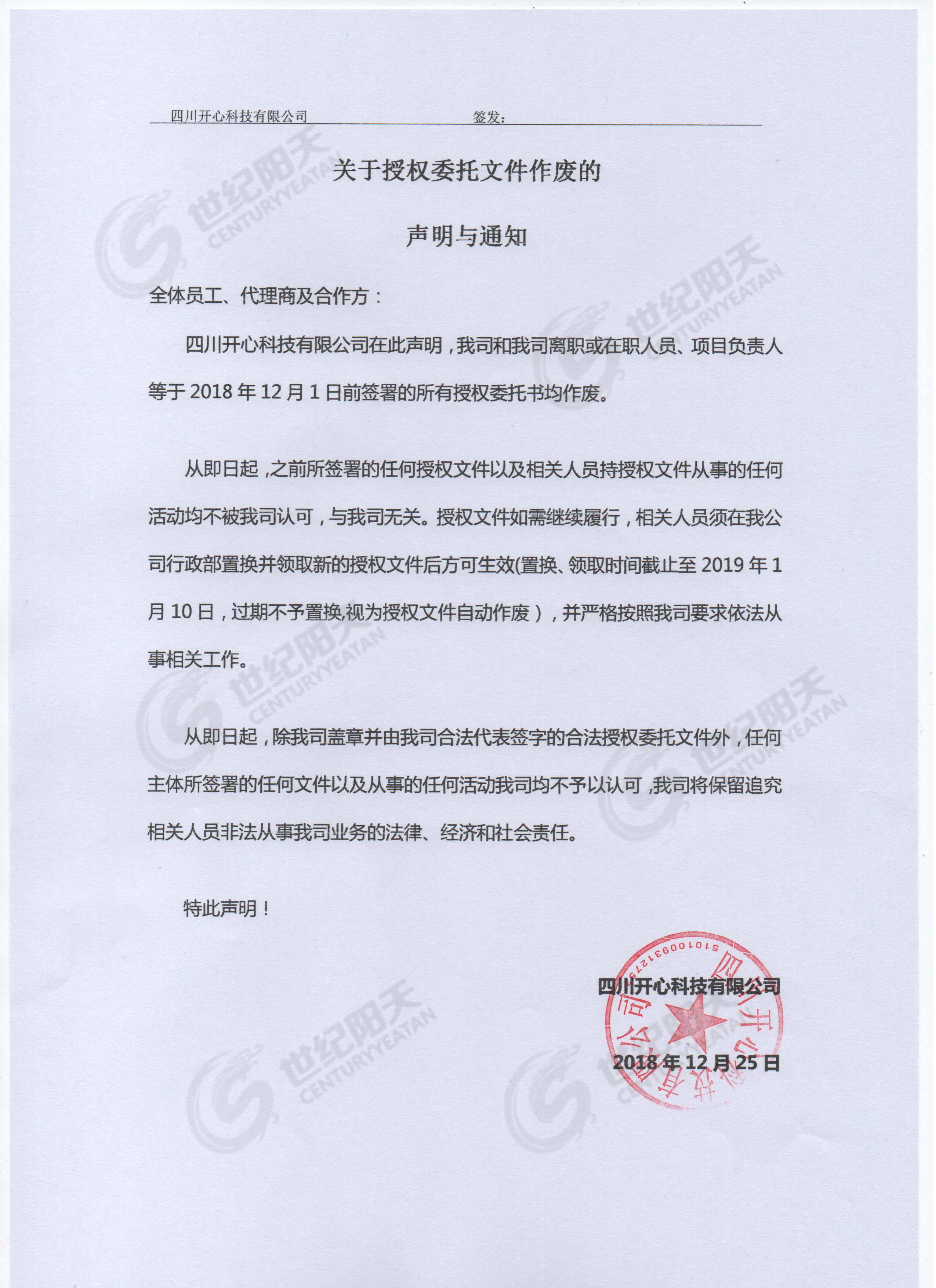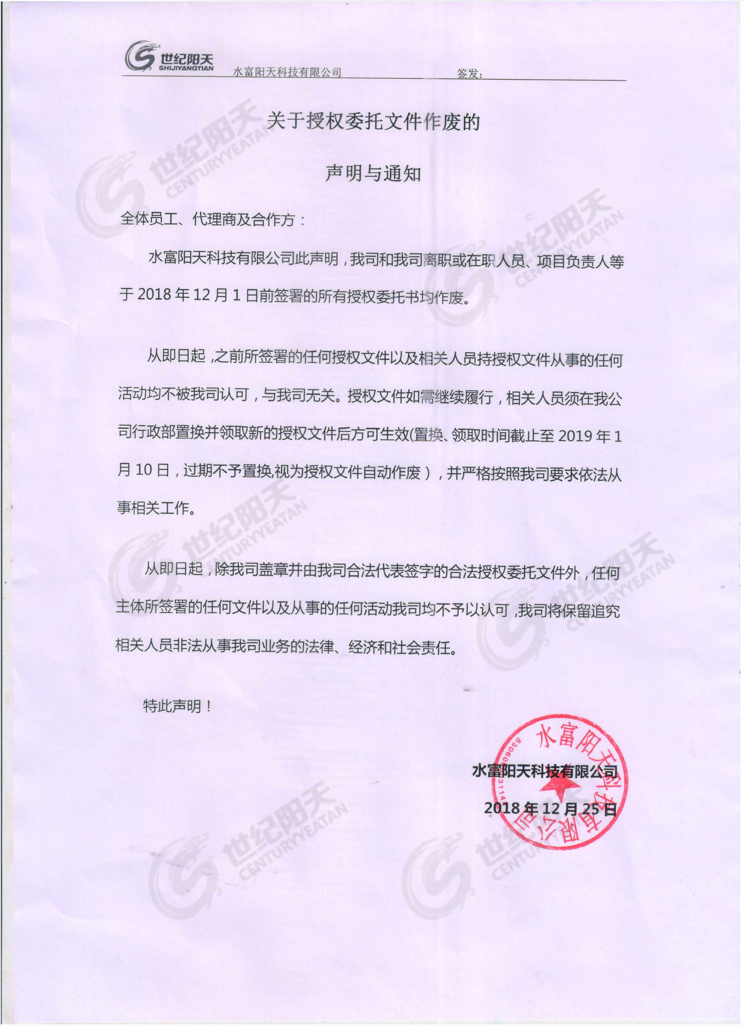 2018.12.25 [實時公告] 發(fā)布者:世紀陽天 瀏覽次數(shù):1381